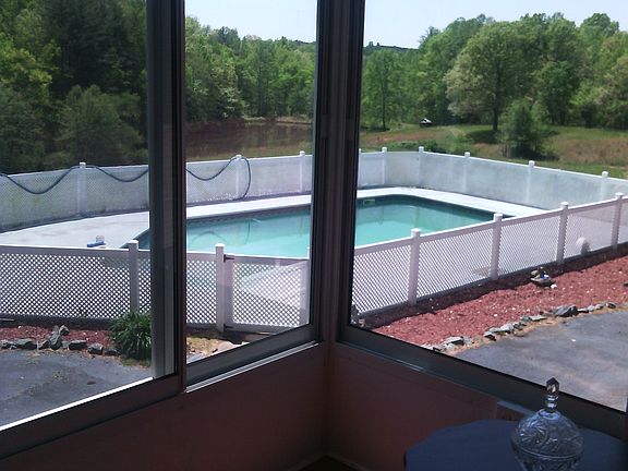 Forsyth County- 3 bedroom 1.5 bath brick rancher on over 12 acres. 16 x 20 finished sunroom overlooking in ground pool and pond. Fishing pond has small dock. 2 level garage and workshop fully wired. Full partially finished basement with fireplace. Private location on dead end road. Property is surrounded by mature trees with large yard and nice pasture. Covered patio area. Paved driveway. Recent roof and pool liner. New carpet . Includes kitchen appliances. A truly unique property. Being sold as is. Available to be viewed on or after 5/2/2016.