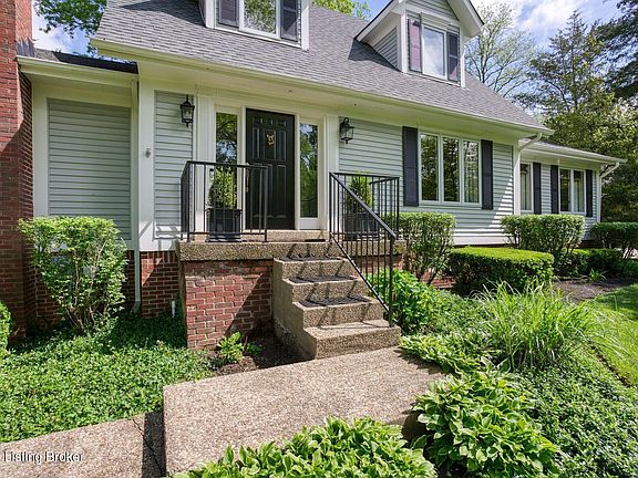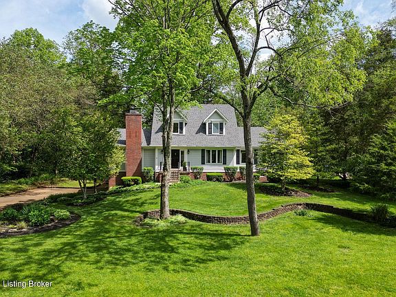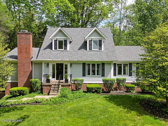 Step into the doorway of your dream home, nestled within the award-winning Oldham County school district. This enchanting 3-bedroom, 2.5-bathroom cape cod-style residence rests gracefully on a picturesque, wooded one-acre lot, enveloped by meticulous landscaping. Upon entry, a grand two-story foyer sets the tone, leading to a spacious, vaulted great room adorned with rich dark hardwood flooring and a cozy gas fireplace. Adjacent, a charming den with hardwood floors provides tranquil views of the surrounding woodlands through its triple window. Designed with entertaining in mind, the circular floorplan flows seamlessly into recently remodeled kitchen and large eat-in area, which offers quartz countertops, stainless appliances, and an abundance of cabinetry. The first-floor primary suite is generously sized, featuring a private bathroom with dual sinks, a walk-in closet, and a soothing whirlpool tub. Upstairs, two additional bedrooms are serviced by a full bathroom. The lower level boasts a versatile recreation room, a potential 4th bedroom with closet, and an unfinished area with workbenches and ample storage, all conveniently accessible from the 2-car garage. The expansive backyard serves as a private oasis, offering two distinct outdoor entertaining spaces perfect for hosting gatherings or simply enjoying the picturesque surroundings. Located in the sought-after Briar Hill Estates, 7603 Cambridge Drive epitomizes modern comfort and convenience.