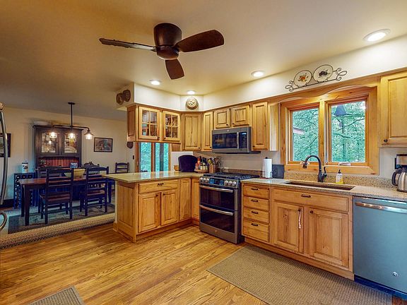 Looking for your own wooded retreat? You're going to love the privacy of this beautiful home on 2.4 Acres with large outbuilding. The home features a two story family room with stacked stone fireplace, & hardwood floors. Just off family room is the completely updated chefs kitchen with custom wood cabinets, quartz countertops, copper sink and stainless appliances. Nice sized dining room off kitchen with access to this amazing Cedar screened porch. Two of the bedrooms are on the main floor and separated by and updated full bath with porcelain tile. The Master suite is located on the 2nd floor and features a small balcony overlooking the back yard. The basement is finished with a huge recreation room area with a pellet stove. There's even a great work from home office, full bath and laundry room. You'll love enjoying the views off either of the two patios overlooking the professionally installed Koi pond with small stream. The outbuilding is perfect man cave/ workshop with partially finished 2nd floor. There's plenty of room for storage in the 2 car garage and additional parking area for trailers or an RV. The sellers have made many improvements over the years including Hardie board siding, low e Hurd windows, custom trim and doors and more.. come check out this amazing property!