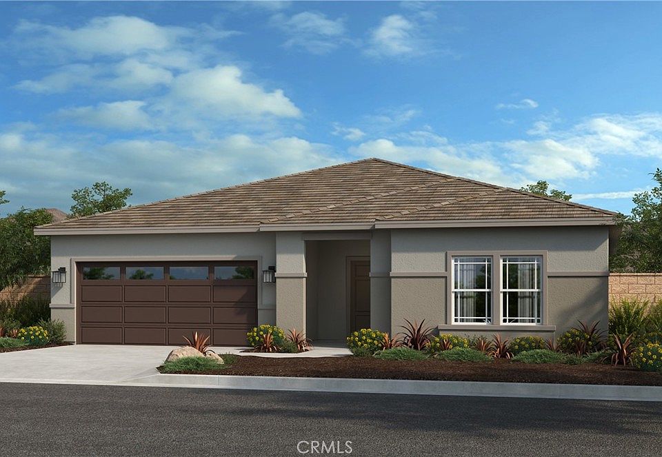 Beautiful single story home in the breathtaking community of Spring Mountain Ranch which is currently under construction. 4 bedroom, 2 bath home with generous great room is perfect for entertaining, and family gatherings. Large kitchen island, Quartz countertops, energy-star appliances make this home the perfect fit. Located walking distance from 6 acre community park, and multiple hiking trails. Bring your clients in right away as this home will not last. Photo is a rendering of the model. Buyer can either lease or purchase the Solar.