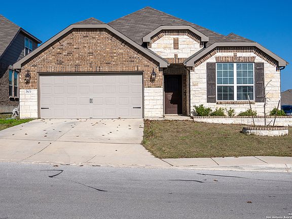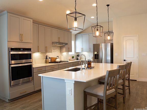 Welcome to this stunning single-story home in the sought-after Cielo Ranch community! With 2,189 sq. ft. of thoughtfully designed living space, this home perfectly blends style and functionality. Featuring 3 spacious bedrooms, 2 baths, and an oversized flex room with elegant French doors, this home offers versatility for your lifestyle. The gourmet kitchen boasts a large island, gas stove, and ample room for entertaining, while the upgraded wall accents throughout the home add a designer touch. The primary suite is a true retreat with a bay window, 2 separate owner's closets, and a spa-like bath. Step outside to enjoy the oversized backyard with an extended patio and built-in grilling station, perfect for hosting gatherings. Situated on a corner lot, this brick beauty offers both curb appeal and convenience. Located in Boerne ISD with Bexar County taxes, and just a short walk to Cielo Ranch's community pool and playscape, this home delivers lifestyle and location in one. Don't miss your chance to call 7603 Pecos Ridge your home!