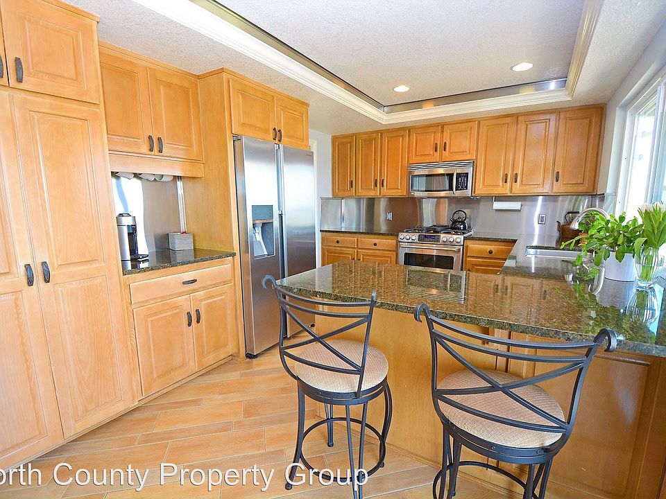 La Costa (Carlsbad) Rental Home - Panoramic View of Resort and Hills! - This lovely Carlsbad ranch style, single family home is located in the exclusive La Costa area of Carlsbad. The home has an impressive curb appeal and features a light and bright open floor plan, wood, carpet and tile flooring, plantation shutters, numerous modern ceiling fans, cathedral/open beam ceilings, gourmet kitchen with dining bar, custom cabinets, granite counters and stainless steel appliances. The panoramic view of the La Costa Resort golf course and the surrounding hills is nothing short of spectacular! The home is offered as an unfurnished rental (furniture in photos is owner's and will be removed prior to tenancy). Enter the home into the large living room with vaulted and open beam ceilings, fireplace, and huge window view of the lush and tropical front courtyard. The cozy family room is open to the kitchen with a huge window showing off the panoramic view and sliding glass door to the outdoor living area. The master bedroom has a similar stunning view and luxurious ensuite master bathroom with travertine tile, custom cabinets, marble counters, large tub, and elegant glass enclosed shower with conventional and rainfall style shower heads. Two other bedrooms and a bathroom are also part of the single floor living area. An additional 350 SF loft in the garage can be configured as an optional bonus room/garage (not included in SF). The backyard area includes a covered/shaded patio for outdoor seating and dining, with inlaid tile, built-in BBQ, lush tropical landscaping, roses and fruit trees. The home is equipped with air conditioning. Gardening service included in the rent. No smoking. Pets OK with restrictions. This property is situated in the La Costa neighborhood of Carlsbad South within the highly rated Encinitas Union and San Dieguito High School Districts (La Costa Heights Elementary School; Oak Crest Middle School, and La Costa Canyon High School). It is also just minutes from Carlsbad State Beach and Ponto Beach, the Carlsbad Village, LEGOLAND, La Costa Golf Resort and Spa, and a quick drive to San Diego favorites such as Del Mar race track and fairgrounds, Torrey Pines Golf Course, Sea World, historic Old Towne, the San Diego Zoo, Petco Park and the Downtown Gaslamp District. Commuting is easily accessible with nearby access Interstate 5. Trips to unspoiled Solana Beach, Cardiff by the Sea, Carlsbad or stunning Torrey Pines State Reserve and Torrey Pines Golf Course are also within convenient distance. Listing and marketing information provided is deemed reliable and accurate but not guaranteed - agent, broker, and tenant should confirm all property information and specifications before entering rental agreement. The leasing team will answer any questions and help you schedule a showing. A $45 non-refundable application fee per adult will be charged. Every person over 18 who would reside at the property must complete and submit a rental application. We are a fair housing provider. All applicants will be subject to the same application criteria. FOR MORE INFORMATION: North County Property Group 858-792-5797 leasing@ncpropertygroup.com (RLNE4080416)
