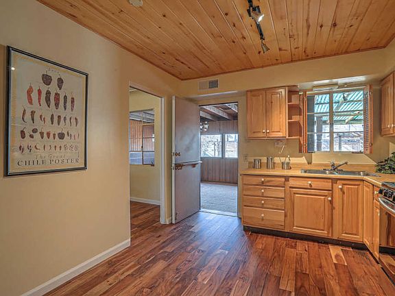 This super unique home has awesome flair! Adorable kitchen has knotty-pine ceiling. Beautiful new engineered wood flooring in living spaces and bedrooms adds warmth throughout. A fun bonus space with built-in bar and an enclosed heated patio with barbecue are awesome additions to the home. Storage spaces abound on this property with a large backyard and heated garage/shop. Schedule your showing today and see all the amazing things this home has to offer!