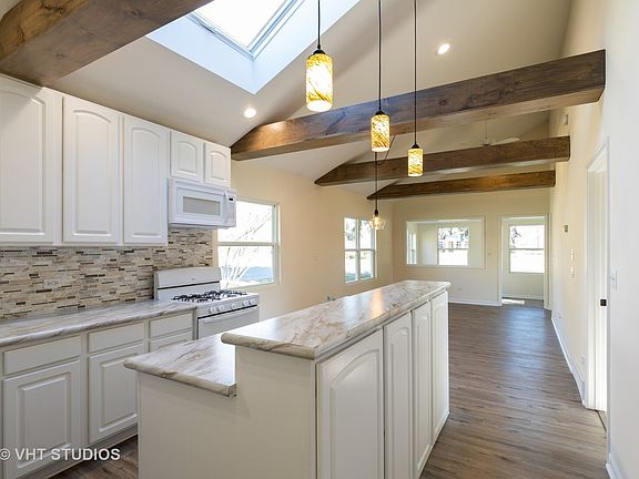 Lovely remodeled ranch home with lake rights to Wonder Lake. Just ready for you to move in. Now let's enter your new starter home. As you enter the front door there is an open enclosed porch that looks into the living room. Now you could make this into a third bedroom if you would like or just enjoy the sunshine and morning coffee on the porch. New flooring throughout the home. As you leave the enclosed porch you walk into the open floor plan with beamed high ceilings you can call it the great room or living room/family room. Light and bright with newer windows. Open floor plan allows you to cook in the updated kitchen with a island in the middle of the kitchen and entertain with your family and friends. New appliances and plenty of cabinets surround this open concept. Now on the other side of the house are the two bedrooms with new carpet. Ceiling fans in both bedrooms and closets. Large bathroom totally redone in 2020 with the hook ups for a stackable washer and dryer stackable ones if you want to move the washer and dryer from the basement. Now let's go down to the unfinished basement that is clean and dry. Great for storage with the washer and dryer are in the basement. This property is a double lot with two parcels 0918182011 and 0918182012. On the second lot there is an extra large two car garage with extra storage for the workshop or mechanic in your family. With this property you have water rights, beach and pier area to put your boat in the lake. Wonder Lake is a private 830 acre recreational lake with its own water ski show team. Minutes from the historic Woodstock Square, roughly 30 minutes from Lake Geneva, WI and 60 minutes from Chicago's North Shore. Priced to Sell and easy to show. Now is the time interest rates are record low. Don't wait!!!