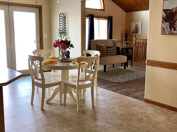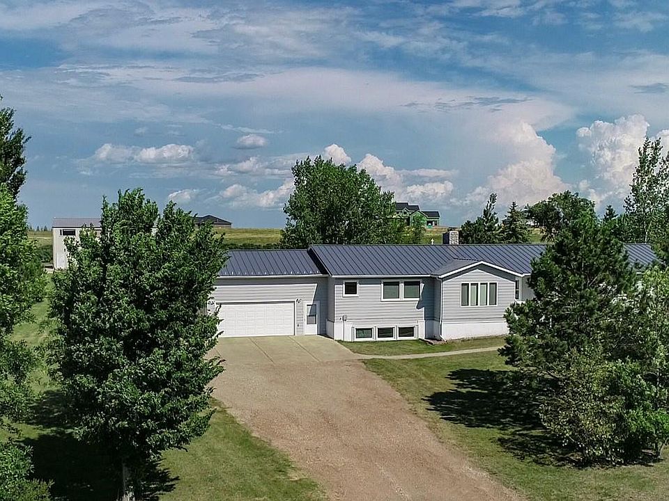 Country Living close to Bismarck! 4 Acres Zoned for Horses! This Ranch style home in NE Bismarck boasts 6 Bedrooms, 4 Baths, a formal dining, custom kitchen, main floor laundry & a Master Suite. The Family Room has a stunning wood stove with beautiful views of your private backyard. The Dining Room leads to the 14x40 back deck, perfect for sipping coffee or entertaining friends. The Geo Thermal Heat and Air keep costs low and the newer Fiberglass Hot Water Heater easily serves this 5300 sq foot home. The Lower Level has an additional access point through the attached Double Garage and is just waiting for your touch. It has all the amenities of the Main Floor including a Lower Level Laundry Room. This well built home has a newer Steel Roof and Seamless Gutters. The yard is filled with beautiful perennials and lush greenery in spring, summer and fall: Fruit Bearing trees, Rose bushes & Garden spaces Galore! The Double Lot is surrounded by Evergreens with a convenient separate entrance off of Sky Lane. The Backyard also features a Playground Set just waiting to entertain. The 48x50 Eagle Span Shop on a concrete slab with three Overhead Doors, Electricity, Water & a Wood Burning Stove adds space for storage & a workshop. Loads of storage areas inside and outside of this home! Tons of Space to make it your Own. Great neighborhood, peaceful, quiet, scenic area with a rural feel, yet located minutes from the center of town.