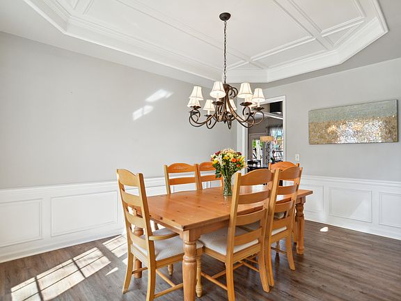 Arguably the best backyard in the neighborhood! 4 bed 2.5 bath updated home in highly desirable Long Lake community in in prime NW Raleigh location. New roof 2019. New water heater 2021. LVP floors throughout most of 1st floor. Fresh interior paint. Spacious family room features gas log fireplace. Large formal dining has trey ceiling and wainscoting. Living room/flex space + 1st floor office. Bright & open eat-in kitchen offers tile floors, center island & newer stainless steel appliances. Primary suite includes trey ceiling, 2 walk in closets, soaking tub & separate shower with bench. Fresh sod in front yard. HUGE, fenced backyard (just seeded) with mature hardwood trees. Finished 2 car garage with recessed lighting & overhead storage. Pool and tennis community with playground, clubhouse & fitness center.