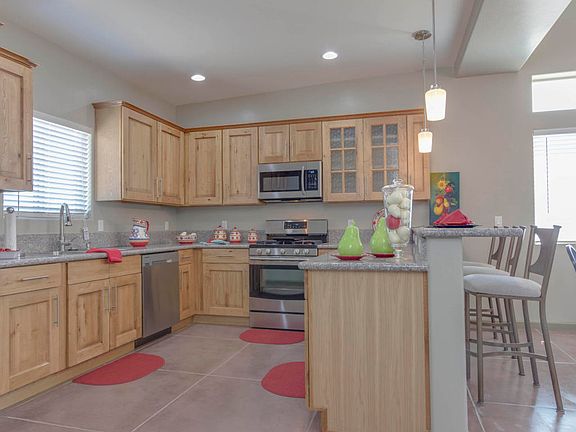 2017 constructed detached home with EZ maintenance colored concrete flooring throughout, granitecounter tops kitchen and bathrooms, high ceiling great room, canned lighting switched ceiling fans throughout, mirrored closet doors bedrooms 2 &3, barn style sliding closet and bath doors in master bedroom, dual shower head master bath, covered patio, and enclosed back yard. Energy efficientdesign for lower utility costs. Close to bus routes, shopping, parks, malls, and more. Minutes from DMAFB, UofA, and downtown Tucson. Enjoyrelaxing in the community swimming pool. Be sure to view the video.