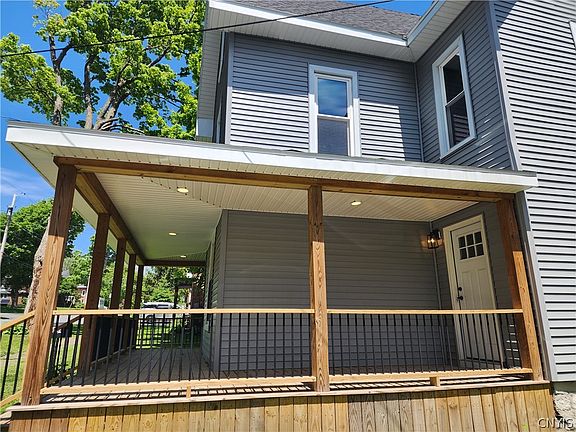 Welcome to your "like new" village home. This home has been completely updated, to include; all new plumbing, electrical, roof, new natural gas furnace, water heater, all new bathrooms and kitchen with all new appliances. vinyl siding, front porch and rear deck. Talk about turn key. Conveniently located village home with park just steps away. On the first floor you will find a lovely living room that is open to dining area. A charming kitchen with a breakfast bar, off of the kitchen is a half bathroom with laundry hookup, and a mudroom which leads to back deck. On the second floor you will find the primary bedroom with en suite and a second bedroom and another full bathroom. The third floor you will find a completely finished double bonus room.