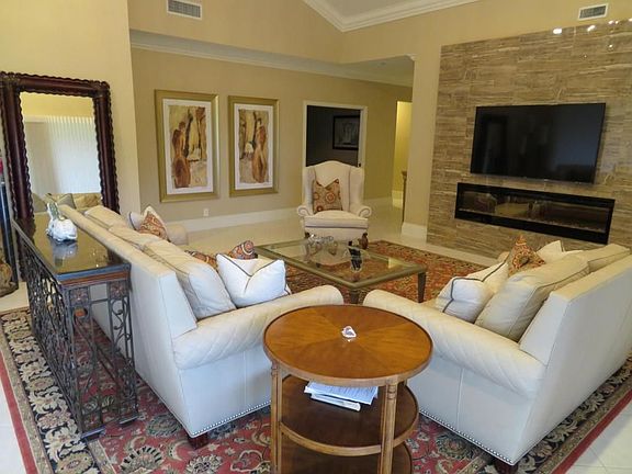 Owner 954-295-5687 This beautiful professionally decorated and furnished second floor unit in Southwinds of Boca Pointe has a lovely panoramic view of the lake and a huge wrap-around terrace. The home, has plenty of natural light, high vaulted ceilings. Living room has custom but electric fireplace that changes colors and also can provide heat. The kitchen has plenty of room for guests with a large quartzite island.and beautiful stainless steel appliances., custom white wood cabinets. The large master bedroom has hand scraped hardwood floors. The bath has a separate glass shower and deep tub. The third bedroom is being used as a warm office/den. There is covered parking at the front entrance. You will find plenty of luxury and charm in this immaculate condo and plenty to do in this community with an 18-hole Jack Nicklaus-designed championship golf course, 29 Tennis courts, a 40,000 sq. ft. Athletics Center, five onsite restaurants and a premier social calendar that is second to none! Gorgeous decor!! AC 16 months new. Memberships are available but NOT mandatory. DIRECTIONS: Enter the Southwards. Go to STOP sign and turn right onto Elmridge Drive. Go straight to roundabout with tree. Unit is upstairs to left of roundabout. Parking space #7 may be used. Owner holds RE lic Contact owner 954-295-5687