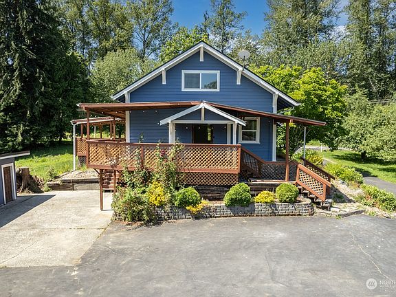 Charming Remodeled 1 1/2-story Arlington home on 11.66 acres(ROOM FOR DADU) in the desirable Grandview community! Move-in ready 2 bed/1 bath with new roof, drywall, electrical, HVAC, flooring, paint. All the heavy lifting has been done on this house. Remodeled down to the studs. Beautiful lot with a mix of grass, mature fruit trees and forest. Opportunity to build trails, mini-farm. Partially finished walk-in height basement with built-in cabinets, fiber-optic cable for office/storage or turn into a living space. Outbuilding for extra storage or living space. Covered deck off the primary bedroom. Paved driveway with room for RV/horse trailers. 10min to downtown Arlington, Centennial Trail, Pilchuck, and I-5 access. Must see to appreciate!