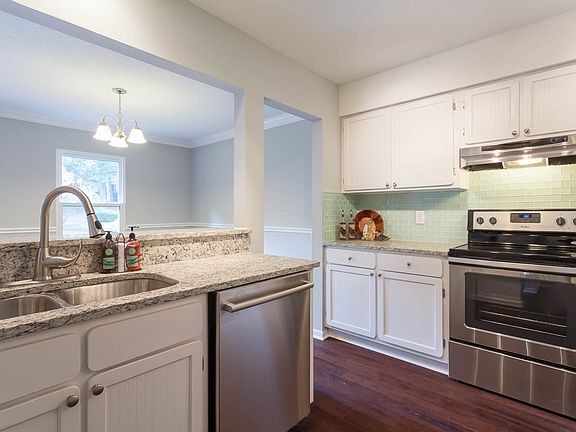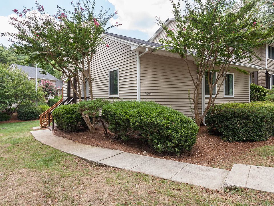 ADORABLE 1-Level END UNIT Townhouse in N. Raleigh, close to 540/440, restaurants & shopping! MOVE IN READY, NEW PAINT, NEW CARPET, Granite kitchen w/backsplash, Bamboo flrs, updates galore! Large Living rm. w/bookshelves, FP & Vaulted ceiling, airy open floorplan. Lrg dining area. Big Master, +master bath with sep. shower & tile flr. 2nd bedrm has full bath. Great deck for entertaining & enjoying peaceful evenings. HOA's attentive: New roof this year. W/D/Fridge convey. Greenway close by. POOL & TENNIS!