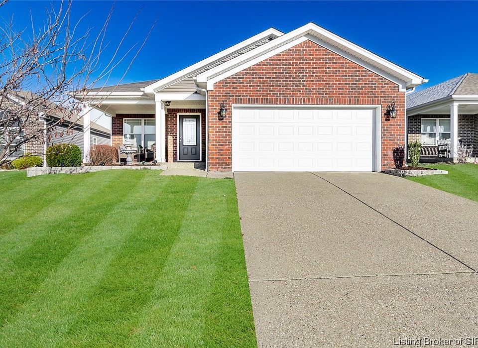 BEAUTIFUL, UPDATED, AND METICULOUSLY CARED FOR HOME in Sellersburg that is sure to impress! An open floor plan with a split bedroom design, this home features 3 bedrooms, 2 full bathrooms that has been updated and is turnkey. This home also features a vaulted ceiling in the living room, kitchen with a breakfast bar & separate island with kitchen appliances included, primary bedroom suite with an updated gorgeous bathroom, 2 additional bedrooms and full bathroom, laundry room, 2 car garage, and an awesome outdoor space for entertaining your guests. The outdoor space includes a fenced yard, covered front porch, covered back porch, elevated deck with privacy, a beautiful patio and gorgeous perennial flowers. With all of these extras....this home will not last long!