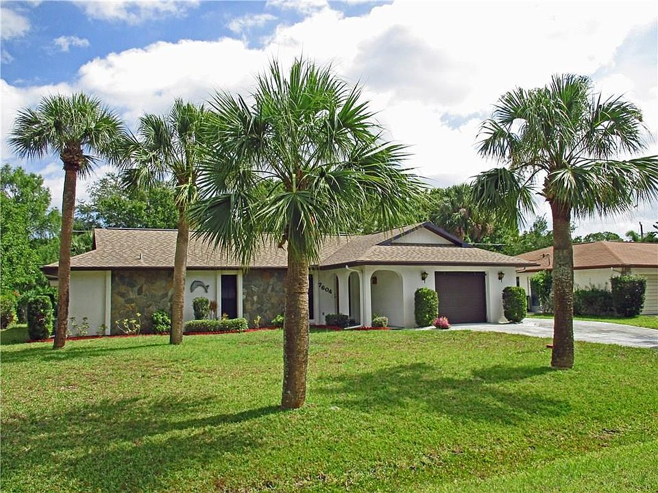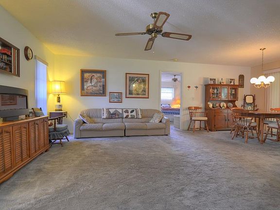 Freshly painted Lakewood Park home with public water and sewer. The 34x12 Florida room is a fantastic year round living space fully enclosed with glass and screens and a separate heating and A/C system. Two large bedrooms with room for king beds. The one car garage has space for shop tools, washer, dryer and laundry sink. Automatic zoned irrigation system on a well. Concrete pad for RV or boat. Subdivision has tennis courts, basketball courts and picnic pavilions. The Lakewood Park Regional Park is located next to the subdivision with baseball, soccer and softball fields, picnic pavilions and grills, a public pool with restrooms and a professional staff offering aquatic lesions and activities. 5 minutes to public library and grade school, 10 minutes to shopping and 20 minutes beach.