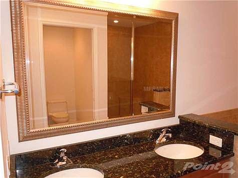 This Lake Vista Residence Champlain Condominium features a split floor plan with 2 bedrooms and 2 baths. As you enter the unit you are greeted by a large open plan which integrates a living room, kitchen, dining area, and great room. The living room features 18" ceramic tile laid on a diagonal, 10'-0" ceilings with a ceiling fan and wall sconce lighting. The kitchen features hardwood maple cabinets with beige granite counter tops, separate pantry, GE Profile black appliance package including a side-by-side refrigerator/freezer with beverage center, smooth surface electric range and stove, double bowl stainless sinks with disposal, and dishwasher. The master bedroom features carpeting, a tray ceiling with ceiling fan, a private entrance to the lanai, his and her walk-in closets. The master bath has 18" ceramic tile flooring, a large vanity with black granite, dual sinks, ample drawers, a full length mirror, corner spa tub, open Roman walk-in shower, separate water closet room with Kohler fixture, and linen closet. The guest bathroom features an oversize cultured marble vanity with 18" ceramic tile flooring, a large shower with glass door and floor to ceiling tile. The laundry is in a separate room with 18" ceramic tile, GE Profile washer, dryer, overhead cabinet work, broom closet, clothes folding table, and utility sink. Brokered And Advertised By: BSA REALTY Listing Agent: JOHN BRAZELTON