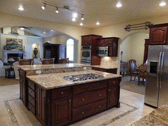 PRIVACY, ACREAGE, AND VIEWS! Elegant living is what is offered at this spacious, well thought-out home. The custom kitchen is a chef's delight with double ovens, a large island with dining bar, granite countertops, and stainless steel appliances. You'll love the mountain view afforded from the formal dining room while the neighboring family room boasts a double-sided propane fireplace plus a wood burning stove. The main floor hosts an office and a formal living room while the nearby master suite is appointed with double sinks, a walk-in shower, separate tub, and a spacious walk-in closet. The walkout basement is wired for surround sound and features a dual family room with a see-through fireplace as well as a wet bar. The 30' x 40' shop with two 12' doors is perfect for housing RVs, vehicles, toy, or workshop equipment while boasting 400 amp electrical service. Incredible well with 50 gpm flow! For Idaho living, it doesn't get much better than this!