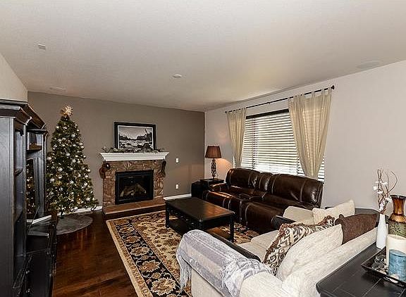 Better than new. This beautiful ranch features many upgrades. The great open floor plan welcomes you to expansive hand scrapped wood floors that run throughout the entire living area of the home. The family room complete with a feature fireplace is huge, a great space to relax or entertain. The kitchen with granite counters and a large kitchen island opens to the family area and features gas cooking and stainless appliance.