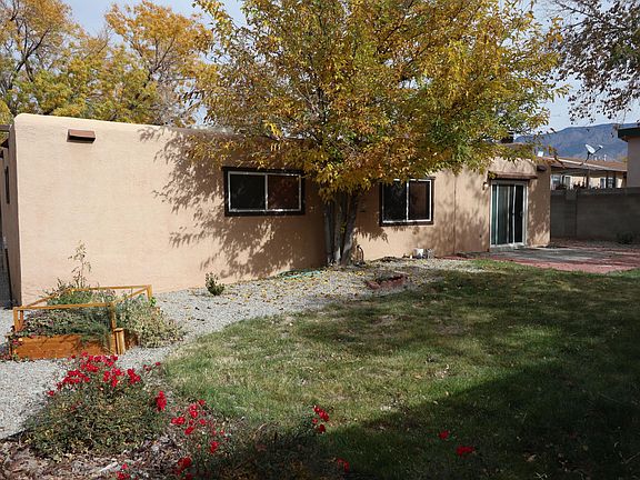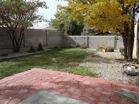 Pueblo style one level on fully landscaped lot. Featuring tile floors throughout with grand entry, eat-in kitchen with brk bar& pantry open to family room with cozy fireplace & Beam ceilings, formal living with archway to family room, large master with .75 bath and two additional bedrooms. Home is freshly painted with newer furnace, water heater and master cool A/C.Thermal windows, front courtyard, storage shed, block privacy wall, dog run, sprinkler system, ez care front landscaping, rear landscaped is lush with grass, trees,bushes, garden area, and open patio.