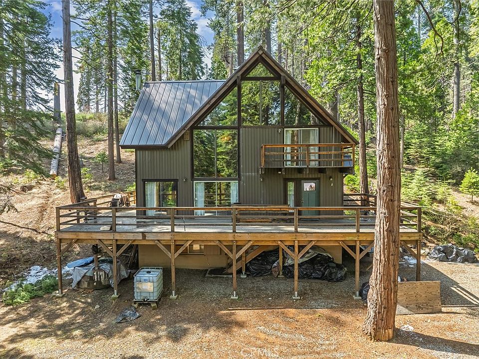 Welcome to the lifestyle. This unique Alpine Chalet is in Fish Camp, minutes to Yosemite, the Mariposa Grove of Giant Sequoias and is at an elevation of 5200ft. The 2600 sqft chalet and 3.2 acre property provide abundant space and privacy for the family or large groups. The front accessible full basement is not included in the conditioned living space sqft. It provides ample storage for seasonal toys and has a fireplace as well as utilities roughed in for a 4th bathroom. You'll also see the HVAC system, water pressure/storage tank and filtration system. In the main living area you and your guest will enjoy 3 story widows, big beam architecture, and ample light. You'll enjoy the feelings of privacy, security, and with some updating, luxury. This home has been cherished as a vacation getaway by the owner builder and the current sellers. It is lightly used and has been well maintained over the years. Important premium components include: Metal roof, metal siding, big beam sugar pine structural members, T&G ceilings, T&G walls, hardwood floors, generator hookup and more. Experience pristine cold water from the private well. Keep this magnificent property as your principal residence, share it with friends and family or utilize Mariposa County's Vacation rental permit for a short term vacation rental. Property is registered as a tree farm providing additional income, incentives, and deductions. There is also a creek running through the property.
