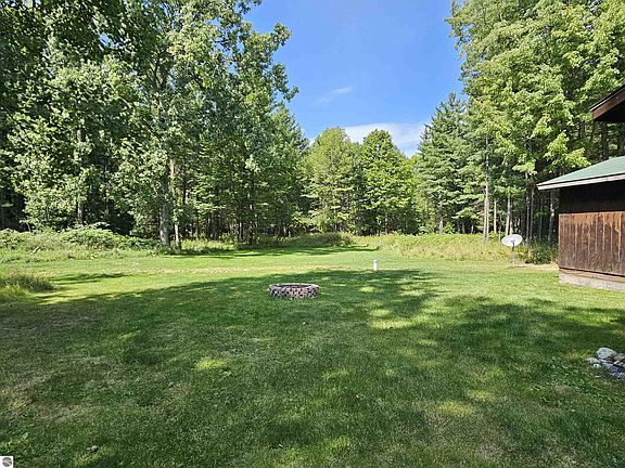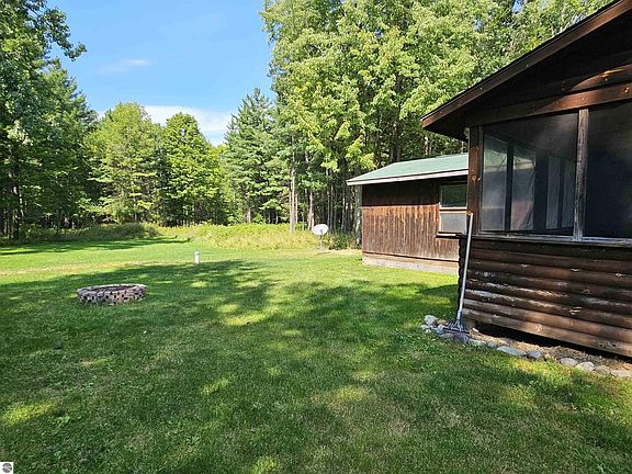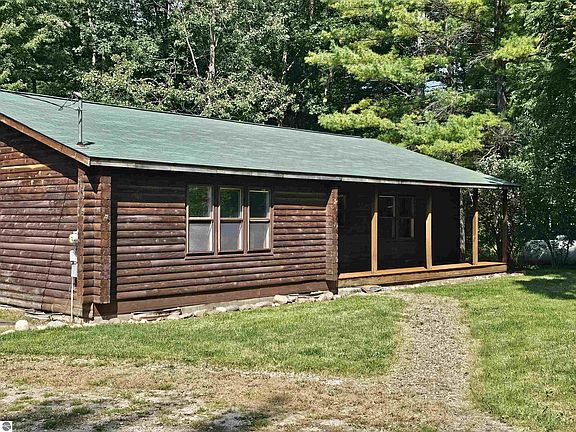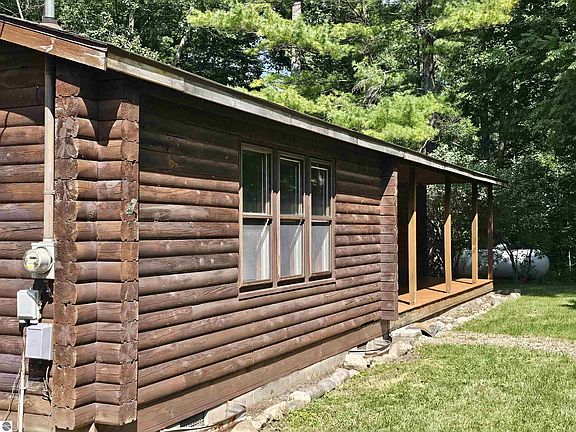 This log home, built with timber harvested from the property is perfect for your new homestead. 10 acres with a mix of hardwoods and apple, plum and walnut trees as well as open areas for a garden and small water holes along the winding trails. An open floor plan features knotty pine throughout. The third bedroom or den has patio doors leading to the back yard or enjoy a 16 x 14 screened porch. A charming, covered porch welcomes you home. There is a detached 2 car garage, and a 28 x 60 pole barn offers lots of storage. Federal land across the street and close to trails, golf course and Hale and its 60 lakes. Recent updates include new chimney for wood stove, 2017- well, and 2015- furnace and roof on house two years ago.