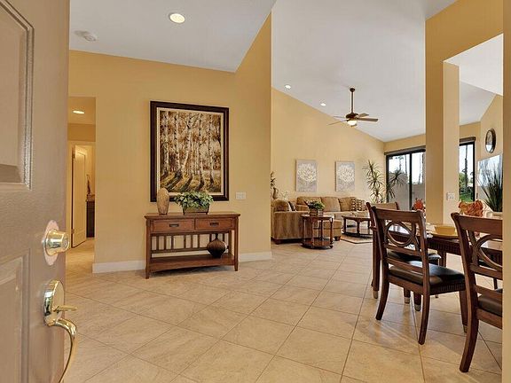 Indulge in luxury with this meticulously remodeled three-bedroom, three-bath residence boasting expansive southern views. As the end unit, enjoy added privacy, an extended patio, and a vast grassy area for your private playground. The open concept living space has a fireplace, kitchen island with beautiful custom cabinets and granite slab counters. All three bathrooms have been remodeled with new cabinets and granite. This 1918 square feet desert oasis offers sophistication and convenience. The driveway, walk way and fairway patio were recently remodeled with pavers. This condo has one of the longest driveways in all of PVCC. Close to the back gate for easy freeway access or a quick exit from the community. Welcome to a residence that seamlessly blends luxury and lifestyle. Palm Valley Country Club is a private golf club with no initiation fee and affordable monthly dues. The clubhouse offers 2 restaurants, a bar, tennis and golf shops and a fitness center and so much more. Come take a look at this gorgeous Sycamore condo.