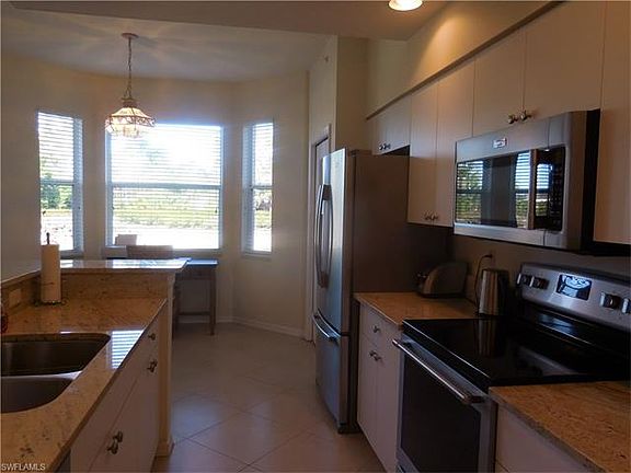 Nothing to do here, but move in and enjoy this 2 bed/2 bath updated Brookside condo. 20 inch tile throughout, extensive crown moldings, brand new stainless appliances and granite kitchen, updated baths and much more just awaiting your arrival. Beautifully furnished and conveniently located on the first floor, this beauty has a spectacular view from the tiled, screened lanai across the water to the golf course and preserve. Sip your morning coffee or enjoy the evening sun glowing off the water, this has it all. Located only minutes to downtown Naples and the pristine beaches, Naples Heritage is situated on 550 acres with lots of green space, lakes, preserves and nature. Bocce, pickle ball, fitness center, 4 pools, spa, active tennis program and championship golf all included in your purchase. Casual and formal dining in the fantastic clubhouse or just relax on the couches by the fire pit on cooler evenings, it is all here!! Come take a look!!