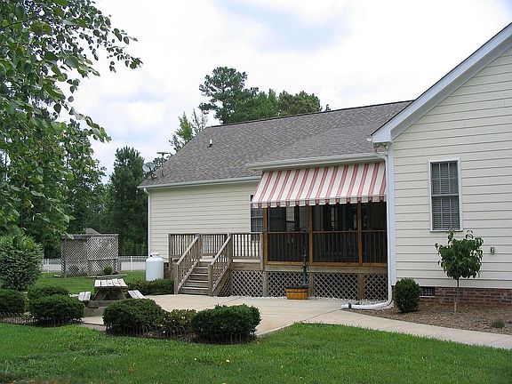 Smart home upgraded (smart thermostat, smart switches, motion sensors, contact sensors). New roof since 2023. New painted interior and exterior since 2023. One story with finished and unfinished bonus rooms and extra attic storage area; attractive aluminum metal fence around back yard; large bedrooms on main floor; vaulted ceiling in family room; screened porch; deck; concrete patio; large parking pad and oversized garage. Large work shed in the backyard. Various fruit trees in the garden. Small neighborhood off Old Creedmoor Road on a cul-de-sac.