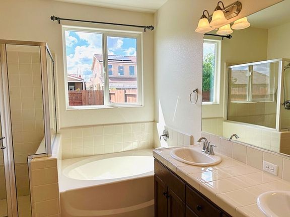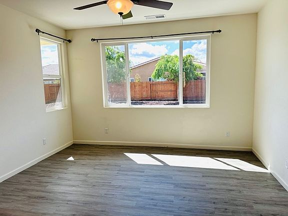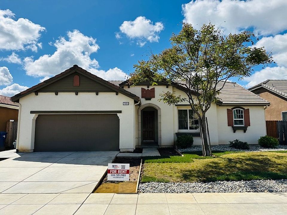Backyard with artificial turf. 3 bed / 2 bath 1515 sq. ft. and built 2017. Great room opens to the kitchen and dinette are with backyard access. Kitchen has granite countertops, breakfast bar, pantry and dinette area. Appliances include black refrigerator, gas range/oven, microwave & dishwasher. Carpet throughout, and tile in kitchen, bathrooms & laundry. Primary bedroom has an ensuite bathroom with soaking tub and separate shower, dual vanities. Two additional bedrooms. Interior laundry with washer & dryer provided. Tenant responsible for yard care. Attached 2 car garage. No smoking. NO pets. Credit score above 650 REQUIRED. Cross streets are Locan & Ashlan. DRE# 01901101. All information is deemed reliable but not guaranteed and is subject to change.