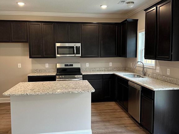 Move In Ready New Construction : featuring The Hudson floor plan. This one of Smithbilt's newest floor plans offered in the Inspire Series. Welcoming front porch into foyer/ spacious family room large kitchen with an Island, Upstairs you will find mater bedroom walk in closet, double vanities , 2 other bedrooms and full bathroom , for your convenience the laundry room is upstairs as well. Plenty of closet space. Level lot. Upgrades include: Counter Height bar in Kitchen, upgraded vinyl siding, Board and Batten Shutters, Cheyenne Interior Doors, Tier 1 Granite in kitchen, and LVP on the Main Level.