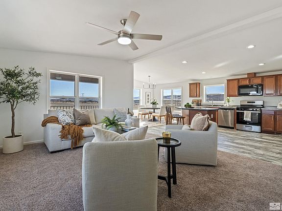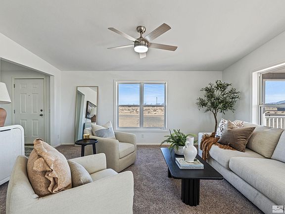 This stunning home has it all! Brand new home in Silver Springs on 1 acre available now. There is room to store all of the toys on this homestead! The home features three bedrooms & two full bathrooms. The kitchen features gorgeous cabinets, and brand new stainless steel appliances. The photos shown are of the same model on a different lot, colors and options may vary. Located in Lyon County this home offers privacy, desert and mountain views with easy commute between HWY 50/95 to Tahoe Reno Industrial,   Center. Easy to care for wood-style sheet vinyl in the wet areas. Generously sized primary bedroom features a walk in closet. Tons of space to enjoy the outdoors-only minutes from recreation at Lahontan Reservoir.