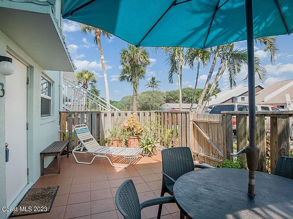Live beachside in this beautifully updated unit located on the ground floor w/front gated court yard/patio. Only one block from the beach! Watch the sunrise, enjoy long walks on the beach or just bring your chair & relax on one of the quiet spans of the beach. Home has lots of updates to included tiled flooring throughout, galley kitchen w/lots of cabinets, granite counters, stainless steel appliances & breakfast bar. Home comes w/plantation shutters. Hurricane impact windows in bedroom. Bathroom updated w/granite & glass shower doors. Spacious bedroom has built ins plus walk in closet. HOA includes trash, sewer, water, pool maintenance, exterior maintenance & reserve. Located close to Cocoa Beach Pier, Port Canaveral, shopping, restaurants, entertainment, gym, park & major roadways.