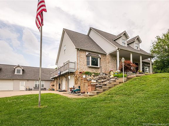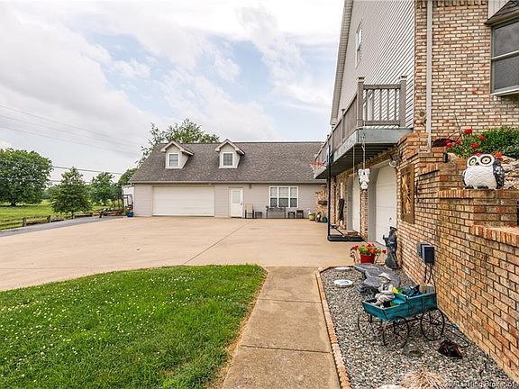 Beautiful custom built brick cape cod with 5 bedrooms and 3.5 baths in the main house with additional living quarters attached to the detatched garage with full kitchen, dining, living, 2 bedrooms 1.5 baths. Covered porch, and deck, with balcony overlooking sprawling country estate. Fantastic country views, with lots of options, in an ideal location, convenient to Charlestown, Sellersburg, and Jeffersonville. A rare find, don't let this one get away. 2008 - New Addition of In-laws home to the garage, including new furnace/Air unit / Addition of waterfall 2019 - New Furnace downstairs, Unit Fully remodeled Kitchen including high-end Appliances, touchless faucet, New floor, etc 2020 - New Paint throughout, New hardwood floor in Master Bedroom, Renovation of Master Closets, Renovation of both Guest Bathroom, New Carpet in Guest Bedrooms