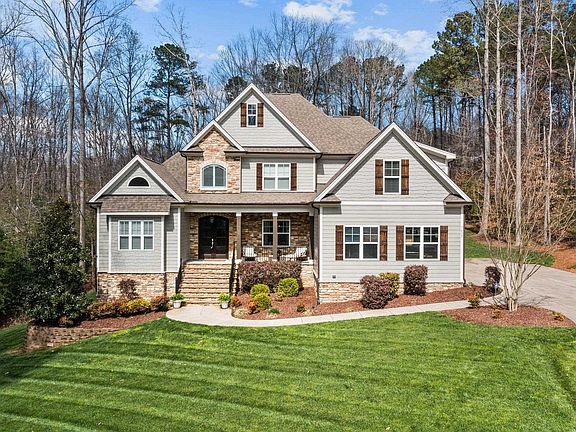 Beautiful custom home in ideal North Raleigh location-super close to Falls Lake where you can enjoy hiking, fishing and boating year round! A plan for everyone featuring on the first floor an office with vaulted ceilings, an elegant 1st floor owner’s suite with trey ceiling, a master bath with separate vanities/ large walk in shower/separate soaking tub, a formal dining with coffered ceilings, a 2-story family room with stone gas log fireplace, a kitchen with extensive center island/oversized built in refrigerator/ freezer, a breakfast area leading to a private screened porch & grilling deck, & a guest suite with full bath. The 2nd floor features a loft perfect for a 2nd den, 2 spacious bedrooms, an over sized bonus, full bath and 2 large attic storage areas. Outside you will find a vaulted screened porch and an open area deck overlooking your lush, private, & wooded backyard. Move in immediately and start enjoying country living with quick city access & amenities!