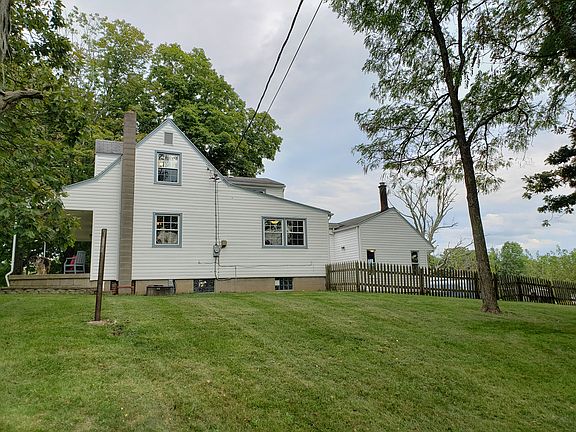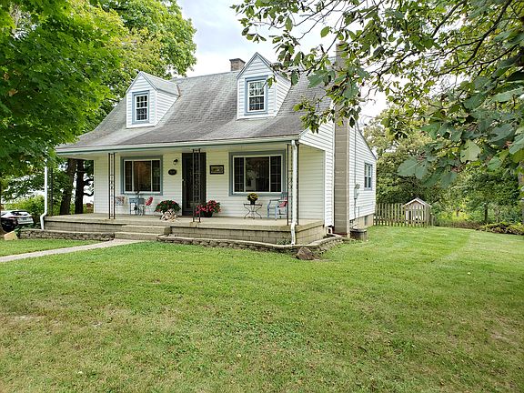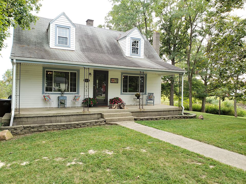 Beautiful Cape Cod sitting in a quite country setting on four acres. One of the four acres is fenced in for horses, goats, etc., with a small shelter barn in the field. Lot has large, mature, beautiful trees, with a handful of fruit trees: apple, peach, and pear. The kitchen has custom cherry cabinets with a large pantry and a Six Star six burner and griddle top stove. Stainless steel matching dishwasher, new microwave and newer Kenmore refrigerator are included. Samsung front load washer and dryer included with property. One bathroom remodeled in 2017 and second bathroom with Price Pfister fixtures in summer of 2019. Natural oak flooring in dining room and living room. Glass block basement windows installed in 2019. Driveway recently seal the last week of September. Double pane insulated Low E windows installed approx. 8 years ago. Large TV room in rear of house with large windows and french doors over looking the back yard and rear property, with the french doors leading directly onto the deck. Large 1200 SF detached block barn with storage above. The barn can hold two stables on one end, while the other end and the center section have concrete floors. The center section can be used as a two car garage and the other end as a small work shop or tack shop. Basement holds all utilities, washer, dryer, furnace, and water heater. New 50 gallon water heater installed this summer. The fuel oil furnace has an additional wood burning warm air furnace located next to it, allowing fire wood to be utilized as the heating source. A 52" Husqvarna zero turn mower, Cub Cadet push mower, and snow blower also comes with the property. A carpet allowance will be given for two of the upstairs bedrooms.
