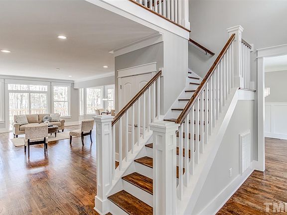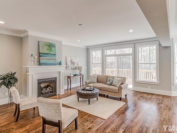 Gorgeous move-in-ready new construction on 1.07 acres in the heart of N Raleigh w/NO HOA dues & NO city taxes! Unsurpassed privacy w/175' setback & beautiful wooded lot. Site-finished hardwoods, custom molding, 5 bay windows, tankless water heater & so much more! Stunning kitchen has highest level granite, stainless, gas range, tile backspl, &soft-close cabinets w/under-cab lighting. Expansive, open fl plan w/2 master suites, 1st fl office, huge bonus & loft! Wrap-around porch & deck plus finished garage.