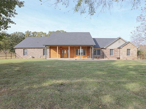 20 Acres: Private yet so close to it all! Charming home nestled at the base of a wooded hill. 3 beds, 2 living areas, dining and office space. Inground diving pool with large deck for entertaining. 40x60 red iron building with 16ft walls and 2 14ft doors. Covered porches lend to peaceful views in every direction. Part pasture, part wooded. Oversized Owner's Suite, real hardwood floors, new roof Aug'20. Explore the land and dig for fossils in the wet weather creek behind the house. 5 min to Tall Chief Cove