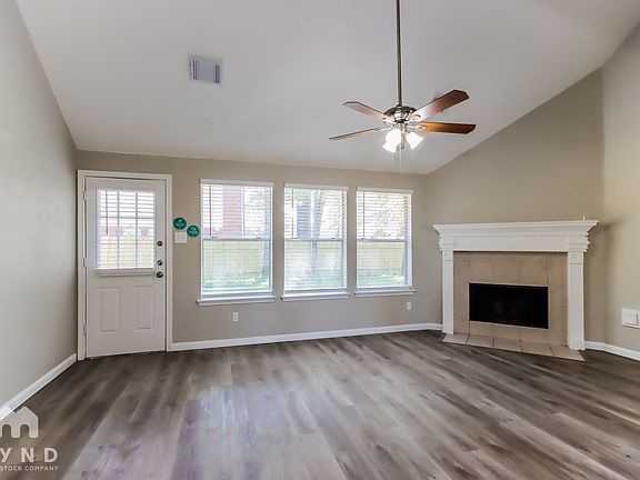 Welcome to a spacious two-story home at 7606 Bronze Trail Drive, offering 2044 sq ft of comfortable living. This residence features three bedrooms and 2.5 bathrooms. The main floor includes a bright living room with a cozy decorative fireplace, a dining area, and a breakfast nook. The modern kitchen is a chef's delight, with a breakfast bar, a full suite of stainless steel appliances, and ample white cabinetry. The primary bedroom is also located on the main level, serving as a peaceful retreat with twin closets and an en-suite bathroom with dual sinks, a separate soaking tub, and a shower. A convenient half-bathroom completes the main floor. Upstairs, two additional bedrooms, each with a walk-in closet, a full bathroom, and a versatile loft area complete the second floor. This smart home is outfitted with a smart lock, thermostat, and hub, providing modern convenience and security. Located in Walden on Lake Houston Golf and Country Club, residents have access to a lake, gym, pool, golf course, and tennis court. The home is conveniently situated close to I-69 for an easy commute. Contact us for more information about this attractive property.