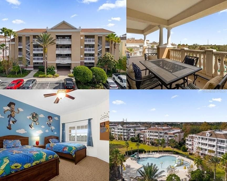 ***ACTIVE MEMBERSHIP AVAILABLE*** TURN KEY POOL/GOLF VIEW condo available in beautiful Reunion Resort!! This FULLY FURNISHED & RENOVATED unit has it all! Location is phenomenal just FOOTSTEPS AWAY to one of the best resort pools in Reunion! Condos with both GOLF & POOL VIEWS are rare in Reunion. This unit is already geared up to take advantage of the short term rental market with two THEMED ROOMS both TOY STORY & MICKEY! Making this unit a perfect fit for families looking for something special while vacationing for Disney! Themed rooms are a great way to separate yourself from the pack and standout in the rental market! Make this FULLY FURNISHED unit your perfect Florida getaway to escape the cold winters, primary residence, or investment property! This unit is in excellent condition as the current owners have not used it as a rental! 4th Floor units are TOP FLOOR & arguably the most sought after floorplans in the Villas! These top floor units have OVERSIZED BALCONIES with plenty of space for the whole family to enjoy the view! Make this unit your own and start making family memories that will last a lifetime! The Resorts Proximity To All The Major Theme Parks Especially Disney World Being Just 2 Exits Away, Makes This Vacation Community A Top Choice For Visitors Of All Ages. If You Are Looking To Take A Few Golf Swings While On Your Vacation You Can Take The Challenge On Any Of The 3 World Class Championship Golf Courses Designed By Arnold Palmer, Tom Watson And Jack Nicklaus That Are Located On Site. Hungry?, Why Not Step Into One Of The 5 Onsite Restaurants That Go From Hamburgers At The Cove To Fine Dining At Eleven And Everything In Between. There Are 12 Pools In The Community Including Multimillion Dollar Water Park With Lazy River & Water Slide.
