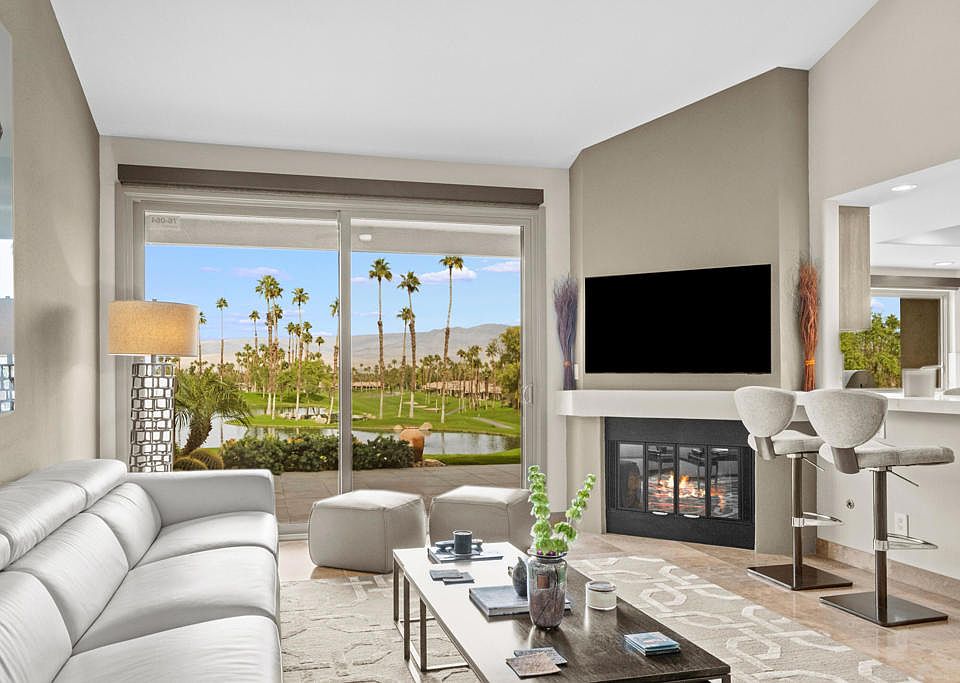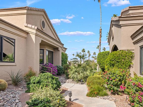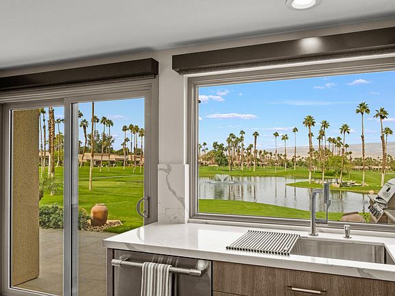 Discover unparalleled luxury in this exquisitely remodeled Sycamore plan, 3 bed, 2.5 bath condo nestled within the prestigious Palm Valley Country Club. Indulge in opulence with stunning finishes throughout, showcasing the epitome of modern elegance. The heart of this home is the newly renovated kitchen, boasting quartz counters, custom cabinets, and top-of-the-line Thermador appliances. The Franke sink adds a touch of sophistication, and panoramic views from the elevated position provide a breathtaking backdrop overlooking 3 fairways and a shimmering water feature. Experience the embodiment of convenience with electric shades which sit over the brand new windows and sliders throughout. The entire residence has been freshly painted, creating a bright and inviting atmosphere. Stay cool and comfortable year round with the newly installed A/C in both the house and garage. Unwind in the primary bathroom, featuring a 450lb quartz wall slab and backlit mirrors for a spa-like ambiance. Indulge in the luxurious feel of Hansgrohe faucets and fixtures throughout that add a touch of sophistication to every detail. This property comes fully furnished with high-end luxury furniture, ensuring a seamless transition into your new dream home. Whether you're a golf enthusiast or someone seeking upscale living, this condo in Palm Valley Country Club is the perfect blend of comfort, style, and sophistication. Don't miss this rare opportunity to own a piece of paradise in Palm Desert.