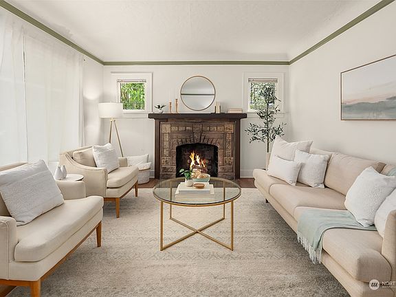 Conveniently located and brimming with charm, this home is sure to capture your heart! Move in and update these spaces and you'll enjoy a practical layout with 2 bedrooms, a sweet kitchen with an eating space, dining room, and a wonderful living room with coved ceilings. Original hardwood floors throughout the upper level and period details. The lower level has a modest 3/4 bath, tall ceilings, an additional living area and a wood burning stove. Don't miss the gorgeous yard! Also a good candidate for development, this 4200 SF lot boasts a flat lot with a newer sewer line and newer water line to the street. Located just minutes from Greenwood Avenue, shops, restaurants, buses, I-5, and SR 99 for swift access downtown or SLU.