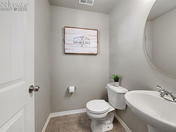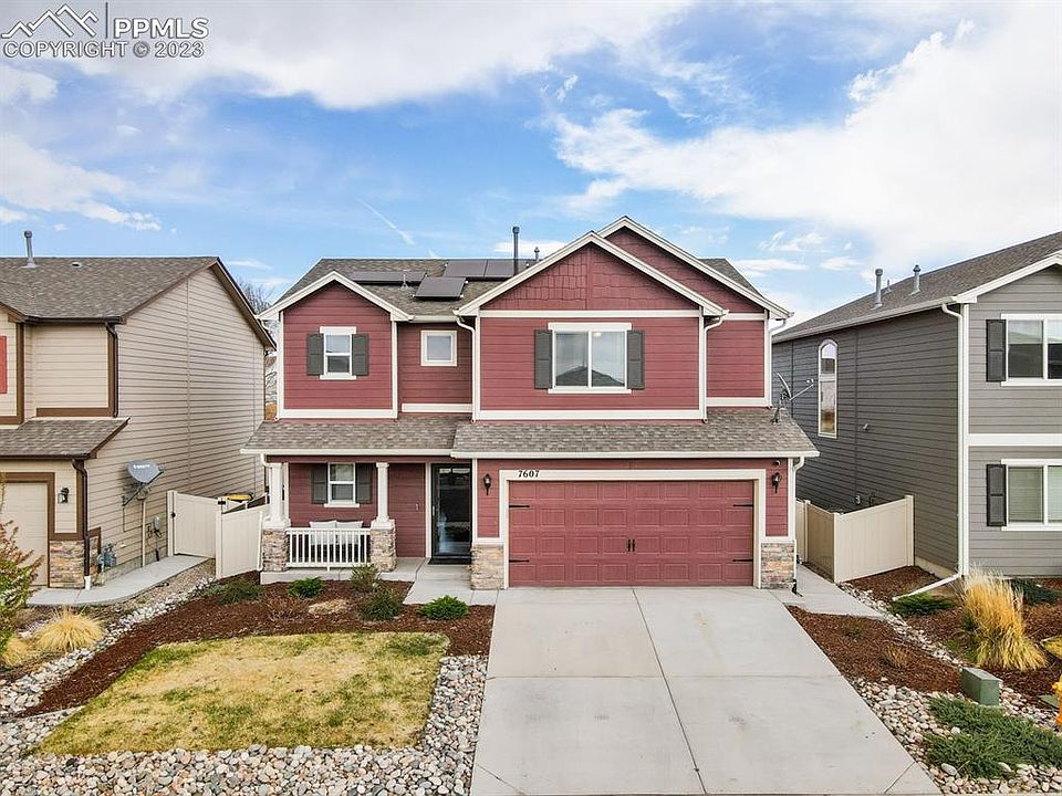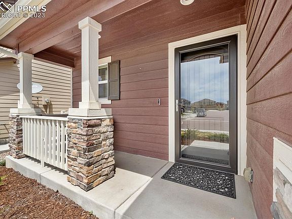 Step inside this well maintained home that will captivate you from the moment you arrive. With 3 bedrooms, 2.5 bathrooms, and a 2-car garage, this stunning residence offers everything you desire and more. As an added bonus, this remarkable home is equipped with solar panels, providing sustainable energy solutions and cost savings. Prepare to be amazed by the inviting open floor plan that seamlessly connects the kitchen, dining area, and living room. The kitchen featuring sleek stainless steel appliances, a gas stove for culinary mastery, and a convenient walk-in pantry to keep your ingredients organized. The heart of the home, this kitchen effortlessly combines style and functionality. As you ascend the stairs, the primary bedroom beckons you with French doors, creating a grand entrance. Step inside and be greeted by an en-suite bathroom boasting dual sinks, a rejuvenating shower, and a spacious walk-in closet. Two additional bedrooms await on the upper level, connected by a convenient Jack and Jill bathroom. Plus, enjoy the convenience of an expansive laundry room on the same floor. Outside, discover a beautifully landscaped backyard adorned with an extended concrete patio, perfect for hosting gatherings. Located in the sought-after Ventana subdivision, this Reagan floor plan is ideally situated near Fort Carson, I25, and the Powers corridor, providing convenient access to shopping, dining, and entertainment options. The neighborhood itself is a haven of recreational amenities, including parks, walking trails, open spaces, a community center with a fully equipped gym, an outdoor pool, and a soothing hot tub.
