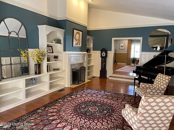 Elegantly renovated raised ranch, executive home with two master bedrooms with elevated stair access, in Briar Hills, Crestwood (Oldham County). Incredible attention to detail in every square foot of this home with built-in shelves and ornamental fireplaces. Virtually every surface and room of this home has been renovated, remodeled, and resurfaced. Sitting on over an acre of manicured grounds, with a fully fenced, sprawling backyard, custom firepit and an enormous deck. The large backyard would be perfect for an inground pool or garden. This home has a total of 4 bedrooms, 3 1/2 baths, over 4100 ft and perfect for entertaining. The gourmet kitchen has granite countertops, maple cabinets and a 6-burner gas commercial range oven. . Lots of windows and light, elegant paint colors make this home very bright. The travertine tiled great room is 24' x 24' and is perfect for a family rec room or office. In addition, there is a formal living room, family room with hardwood floors throughout. This home is engineered for maximum energy efficiency including the crawl space being encapsulated as well as added insulation. "Top of the line" drainage system as well as a dehumidification system and the roof has newer Sentry Gutter Guards. A 4-car garage, plenty of storage and a maintenance free exterior. Very quiet, wooded setting, yet less than 10 min from shopping, dining, and Oldham county award-winning schools.