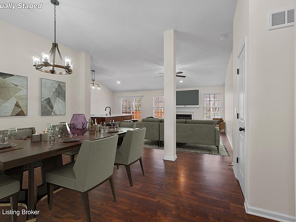 Welcome to this immaculate home with lots of recent upgrades! As you enter the home you'll find the spacious dining area for meals and get-togethers. The dining area is open to the large living room with a beautiful fireplace as its centerpiece. The kitchen is open to the living room and features a new custom-made island with huge quartz slab. There are newly-painted cabinets with new quartz countertops, new quartz backsplash, and new cabinets with pantry around the refrigerator. You'll notice new light fixtures and can lights throughout the first floor as well as freshly painted walls. There is a large laundry room/mud room with a wall of new cabinets as you come in from the garage. The primary bedroom is split from the other two bedrooms. It is a large room with double tray ceiling. The primary bathroom has lots of updates including new tile floors, newly painted cabinets and pulls, new faucets, and new frosted glass door. There are two other nicely sized rooms on the first floor split from the primary bedroom with large closets. The finished basement is spacious and features a custom-made bar with shiplap wall and custom shelves. There is a fourth bedroom with full window for lots of light. There is also a full bathroom and large storage room with built in metal and wood storage shelves. There is an additional room for an office or for sleeping. The rear of the home features a two-tiered deck and tree-lined back yard for privacy. Come see this fantastic Oldham County home before it's too late!