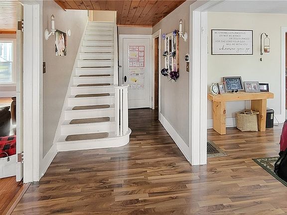 4 bedroom home in the Village of Lowville. Many updates have been done since 2018 including: roof, natural gas forced air furnace, 14 windows, exterior and interior doors, water heater, sewer line and a complete remodel of the main bedroom. Large living room with original hardwood floors, pellet insert and built in TV stand that will stay with home. Formal dining room with laminate floors. Spacious kitchen with plenty of storage and workspace, all appliances included. Laundry area off kitchen. Half bath on first floor. Upstairs you will find 4 bedrooms and a full bath. The smallest of the 4 bedrooms is being used as a closet but can easily be turned back into a bedroom. Full attic with walk up stir access, great for storage. Covered side porch, detached 1.5 car garage and storage shed. Within walking distance to downtown Lowville and all it has to offer, schedule your showing today.