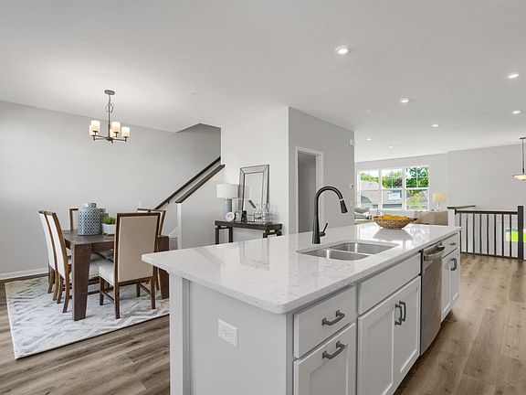 Inquire about the SUPER LOW 30yr rate lock incentive + much more! This airy, new construction townhome features 2,082 finished sq ft with 3 bedrooms and 2.5 bathrooms. The vaulted foyer walks you into the open concept floorplan on the main level. Luxury vinyl plank flooring melds everything together perfectly. The family room has a cozy electric fireplace. 9' ceilings with large windows and an 8' sliding glass door allows natural light to shine in all through out the home. The kitchen is equipped with stainless steel appliances and large center island with ample space to meal prep and then some. Enjoy a traditional meal in the cozy dining area or switch it up and take it out to the maintenance free balcony. The exclusive owner's suite features TWO walk-in closets and a private bath room with double sinks. All 3 bedrooms are located on the upper level along with the laundry and the main bathroom. The lower-level rec room is spacious, finished and ready to go! All appliances included.
