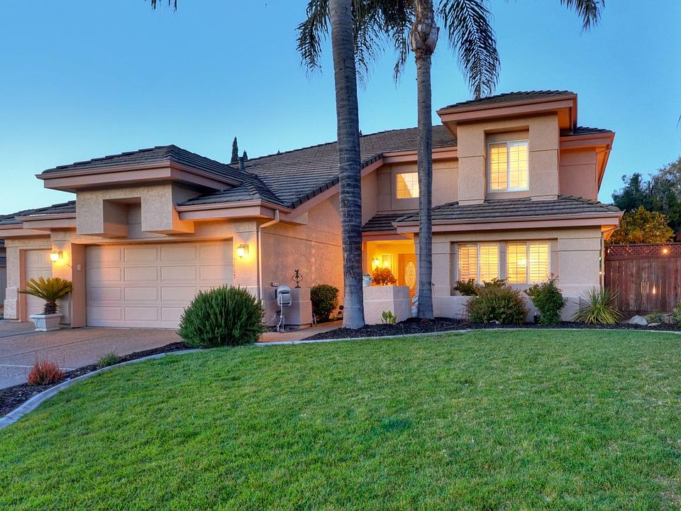 Welcome to this stunning home where elegance meets functionality. As you step inside, a grand 2-story great room invites you, adorned with natural light and warmth. The kitchen boasts a modern stainless steel gas appliance package and updated countertops, perfect for culinary adventures. Enjoy casual meals in the breakfast area or gather around the counter seating with custom wooden countertop. The kitchen seamlessly connects to the dining and living room combo for effortless entertaining. There is a first floor bedroom and bathroom with walk-in and shower. Upstairs, discover tranquility in 2 spacious bedrooms alongside a beautiful primary suite. The primary bath offers dual sinks, a separate tub, and shower for a spa-like retreat. The whole house fan helps keep the temp perfect year round. Outside, a private oasis awaits with a sparkling pool surrounded by ample seating areas, ideal for relaxing or hosting gatherings. Experience the epitome of comfort and sophistication in this exquisite home situated on a sought after court in Elk Grove.