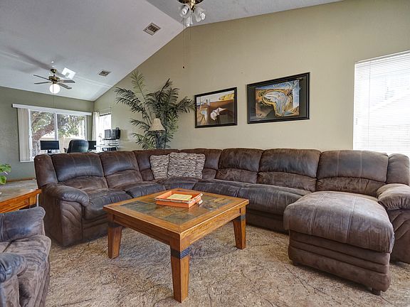 This incredible home in Peoria won't last long! Newer items include: dual pane windows, a/c and water heater. This open concept living space features vaulted ceilings, a sunken living area, lots of natural light, and beautiful hardwood stairs. The kitchen has wooden cabinetry, all white appliances, and a breakfast bar. The spacious master retreat is grand with roman shades, a master bathroom with a his-and-her dual vanity sinks and a large walk in closet. Bonus downstairs bedroom and a newly upgraded guest bathroom. Out back you will find a covered patio, quaint footbridge, grassy lawn, and a large shade tree, all with an automatic irrigation system. RV gate/parking. Just minutes from Arrowhead Mall, Peoria Sports Complex and freeways. You will love this home!