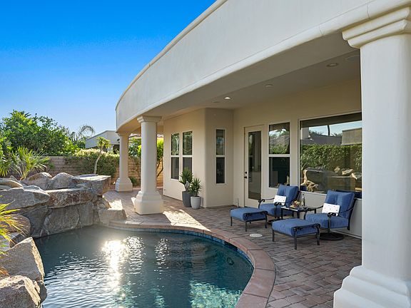 Luxury Desert Lifestyle in the heart of Indian Wells. A 3-bedroom 3.5-bathroom home located in the exclusive 74 home gated community of Montelena. This Plan 5 model is the largest floor plan at 3,430 sq. ft. and focuses on entertaining with its spacious center courtyard to enjoy indoor/outdoor desert living. There is a large formal dining and living are perfect for entertaining and open directly to the courtyard. The gourmet kitchen is equipped with Viking appliances, granite counter tops and custom cabinetry with breakfast nook overlooking the cascading waterfall that flows into your private pebble pool/spa. The main suite and bath are massive. New carpet in all bedrooms with both guest bedrooms having their own en suite private baths. This home is an Entertainers delight! Residents of Indian Wells enjoy year-round recreational activities like swimming, golf, tennis, and distinctive resident benefits. With a Resident Benefit Card, you will enjoy select discounts at the Indian Wells Golf Resort, BNP Paribas Open, as well as benefits at all 4 Indian Wells Resort Properties and hosted exclusive resident events, buyer to verify.