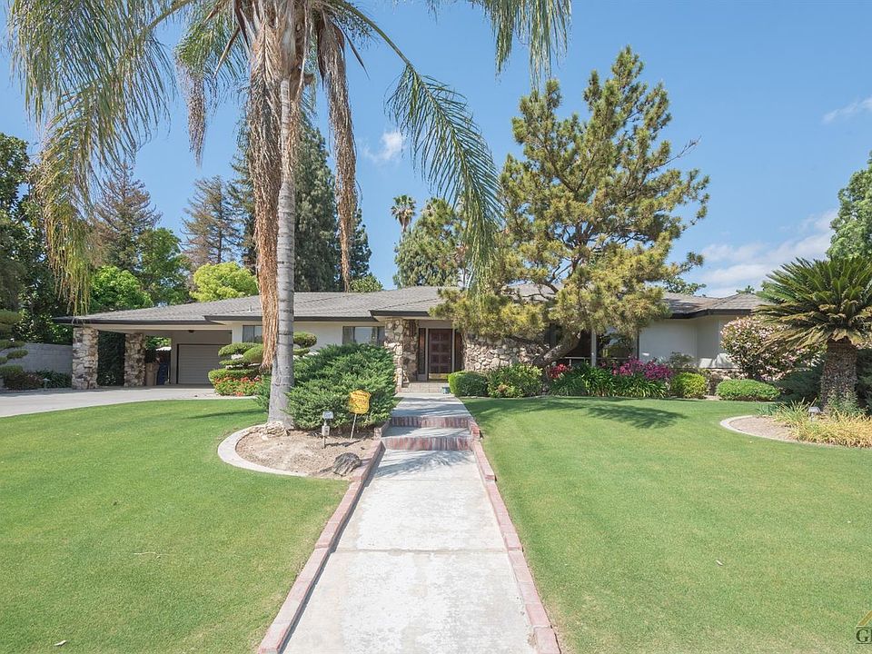 Prestigious Stockdale Estates! This 2,728+- sf home features 3bd, 2.5ba on a roomy .34+-acre lot. With handsome floor to ceiling rock fireplace & wet bar in the greatroom, lovely kitchen w/ hand-set ceramic tile counters & full backsplash, double ovens, generous custom cabinetry, pantry & nook w/built-in desk. You'll also find formal dining w/French doors opening up to a dream of an indoor entertainment space complete with built-in cabinets & sink, BBQ-grill, SS hood, vaulted-open beam ceiling, built-in hutch and sparkling view windows looking onto the beautifully groomed rear yard. Designer features include lighting & window coverings throughout. A restful master retreat is appointed w/ an ensuite & walk-in closet w/custom built-ins. Fully landscaped front & rear yards include an extended driveway, porte cochere, rock accented elevation, covered patio and gazebo. All within a stone's throw to the rich traditions of Stockdale Country Club.