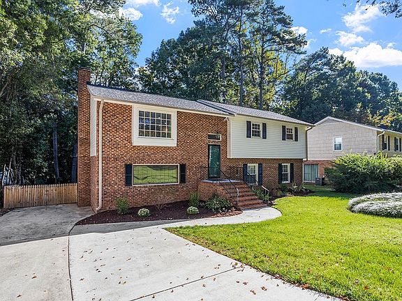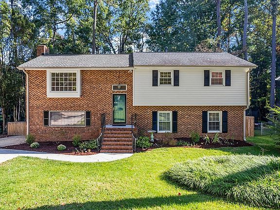 Charming 4BDRM split-level home w/ 3 full BAs located walking distance to North Raleigh's Lafayette Village shopping & dining venue. Home's upper level houses LVG RM, DIN RM & KITCH in open floor plan design, along w/ primary BDRM w/ensuite BA + 2 add'l BDRMs & hall BA. Lower level features huge FAM RM that opens to patio; great for entertaining w/ its abundance of space for game tables, bean bag pillows, etc. Family & friends can also enjoy sitting around the gas-logs masonry FRPLC while watching a movie or ball game. Lower level also has an extra-large 4th BDRM that could serve as a bonus room, office and/or exercise space. Add'l rooms below include MUDRM, which houses laundry closet + a small flex room just off the BDRM. Large rear deck overlooks fenced backyard that features fire pit & large storage shed. Please contact co-list agent Philip Little with questions and offers.