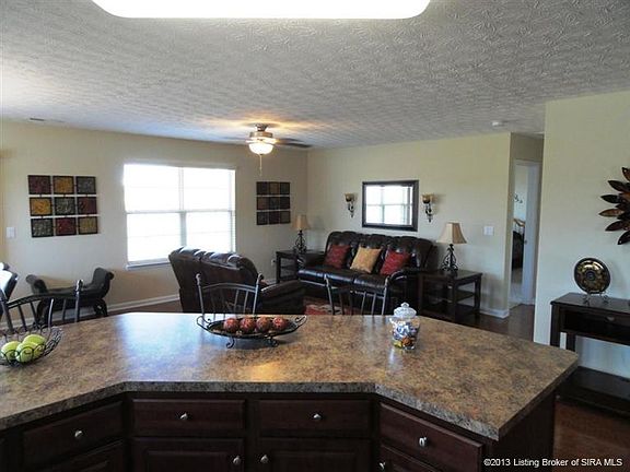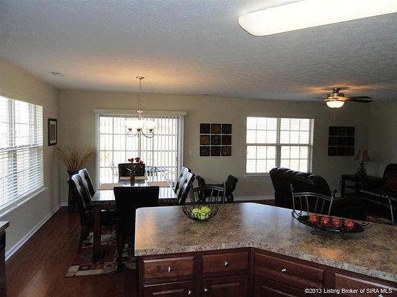 LOCATION: Sellersburg! Look at these photos then make your appointment! This all brick home has exquisite today decor, is a split bedroom plan, completely open concept with entry foyer & abundance of natural light. The tiled kitchen has full complement of stainless appliances, enormous tiled walk-in pantry & huge bar with expansive seating. Gorgeous hardwood in foyer, main living/dining - perfect entertainment showplace. Large bedrooms & ceramic baths/laundry. 2 car garage with storage area & one of the nicest (corner) lots in subdivision. Truly shows better than new. Custom blinds throughout. All meas. & SF approx.\n\nInformation Deemed Reliable But Not Guaranteed. Information provided by the Southern Indiana REALTORS® Association, Inc. © 2010 SIRA Multiple Listing Service. All rights reserved. Brokered And Advertised By: RE/MAX FIRST Listing Agent: Karen K. Elliott